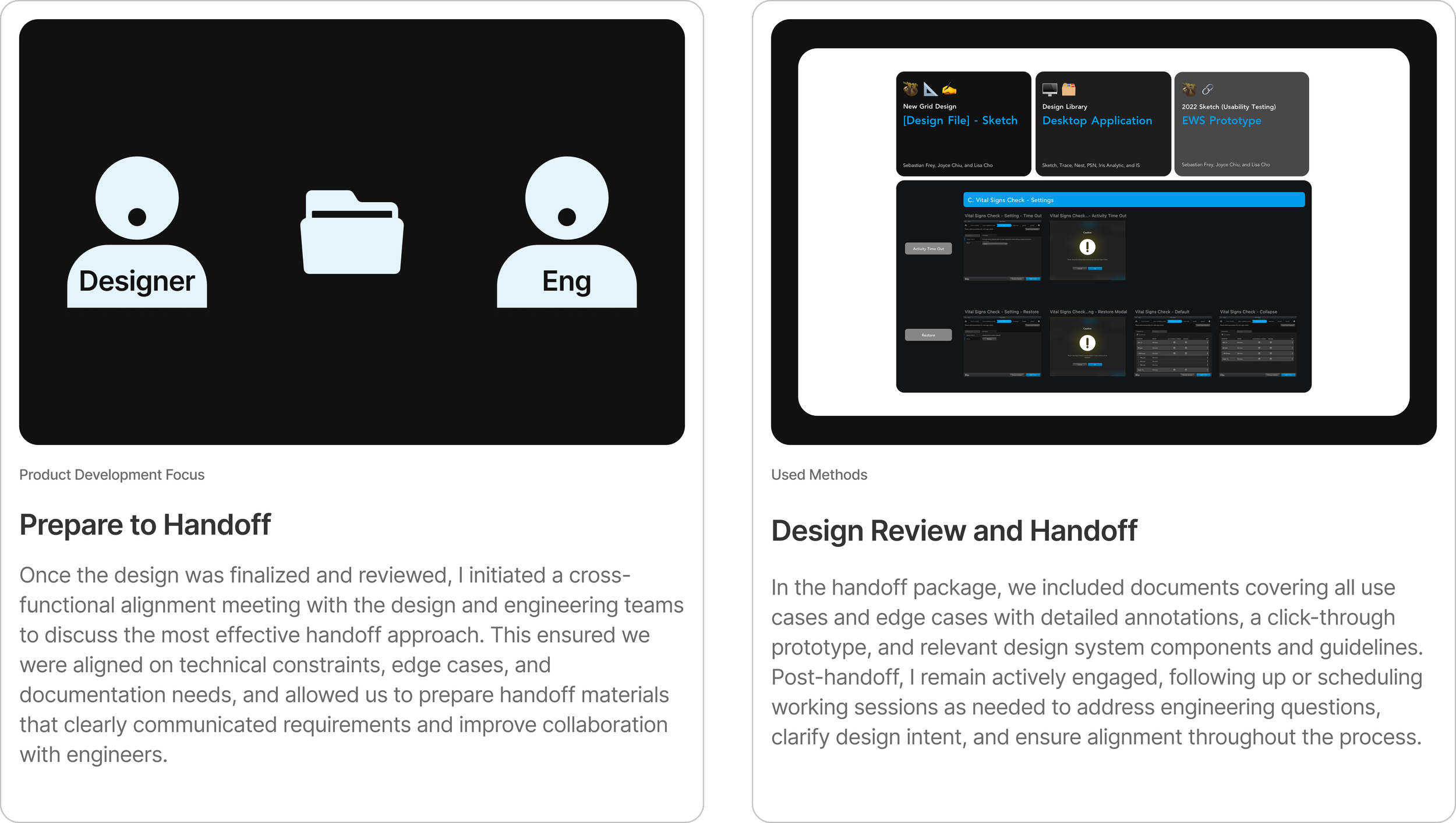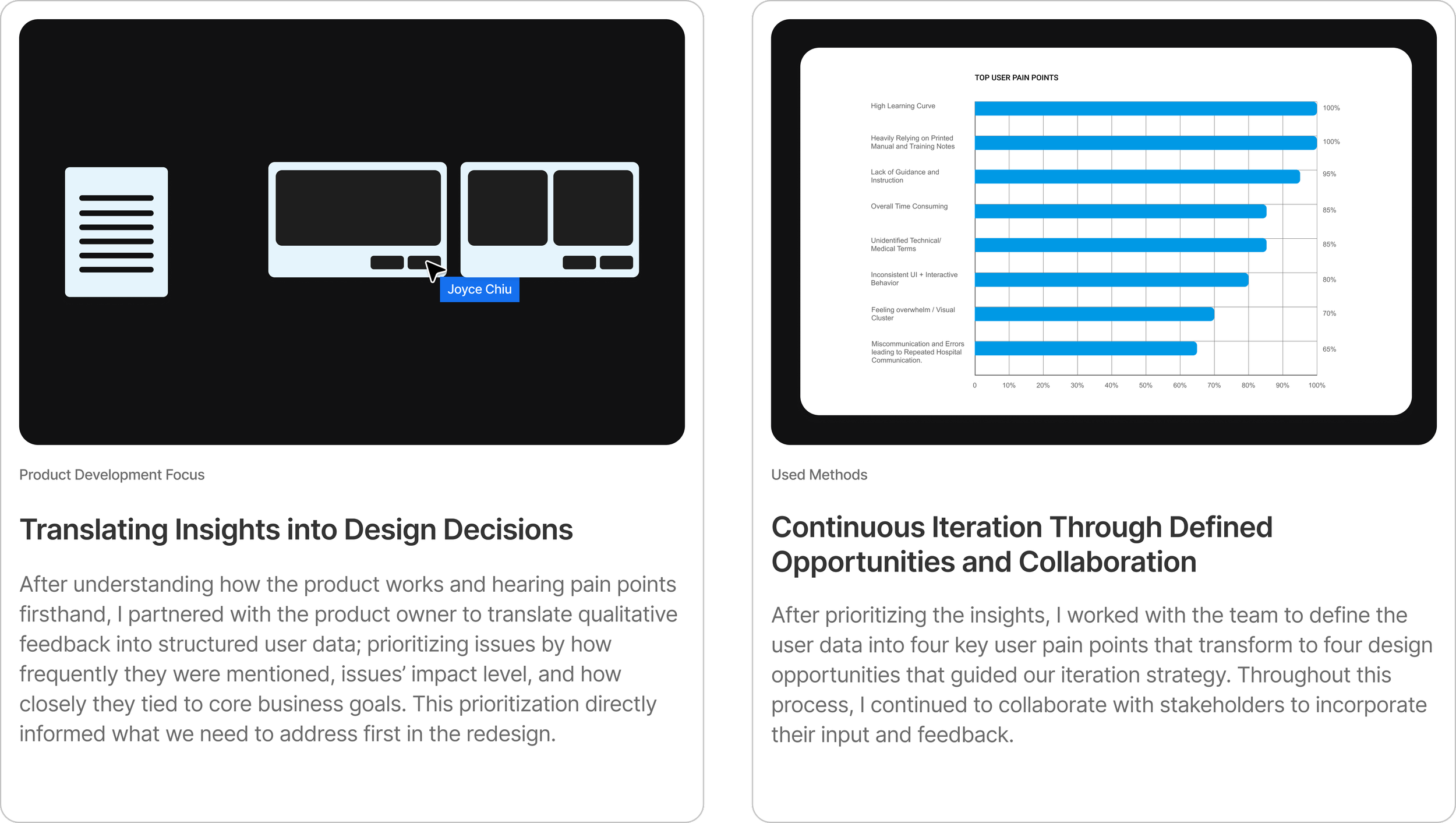The product was launched internally in May 2025, after I left the company, so the impacts success metrics are primarily demonstrated by the highly positive results from our usability testing.