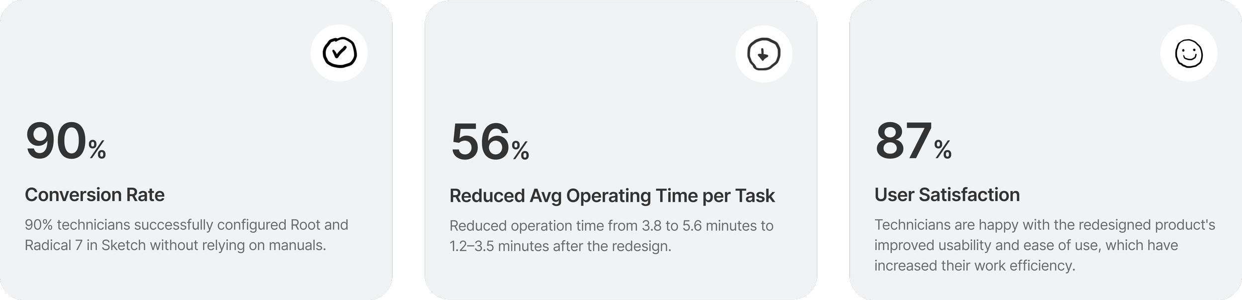 As design lead, I drove the Sketch UI rebrand and established the first design system while simplifying configuration steps, increasing task success rates, reducing operation time, and improving overall user satisfaction.